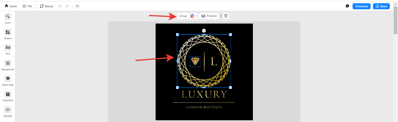 Как сгруппировать элементы логотипа?