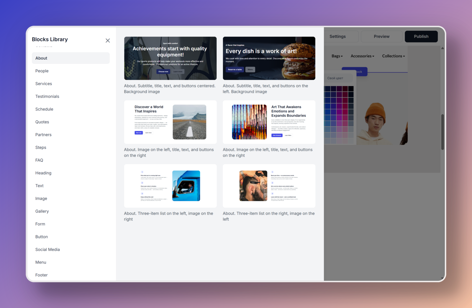 - Вы также можете изменять структуру сайта, перемещая блоки между собой.