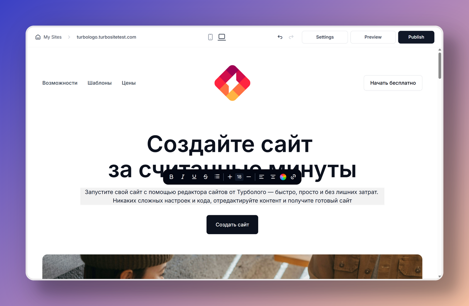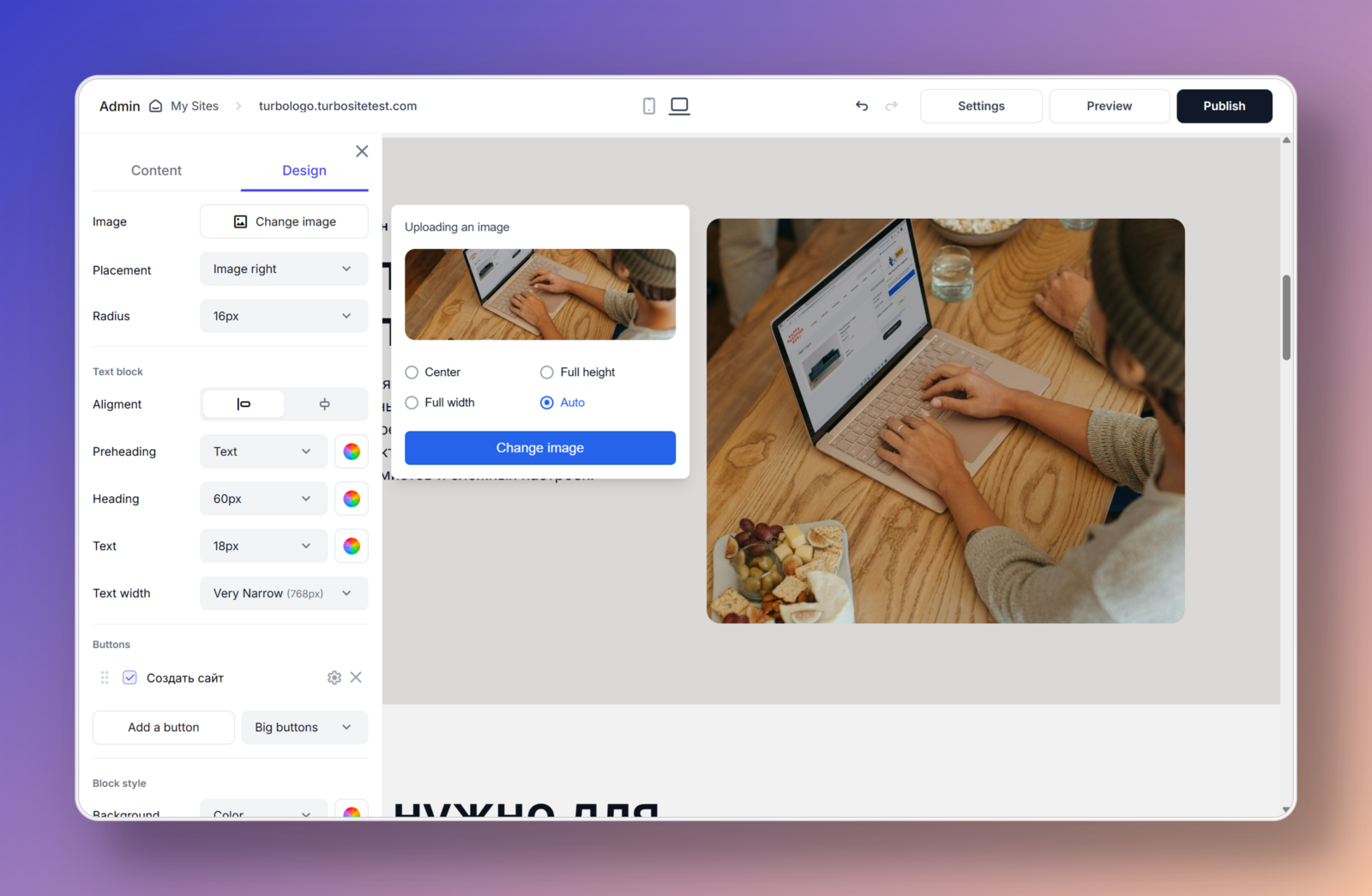 - Вы можете изменить текст прямо на странице — просто кликните по нужному элементу и введите новый текст. Все изменения видны сразу же.