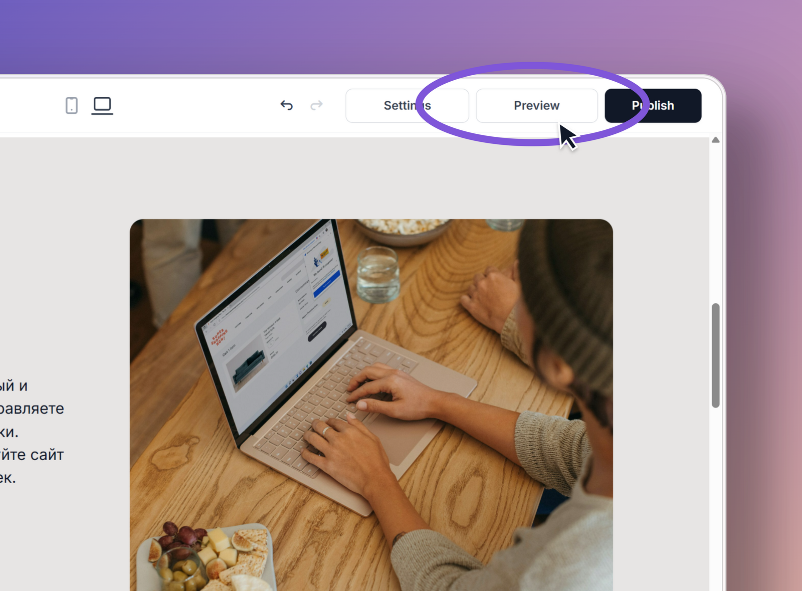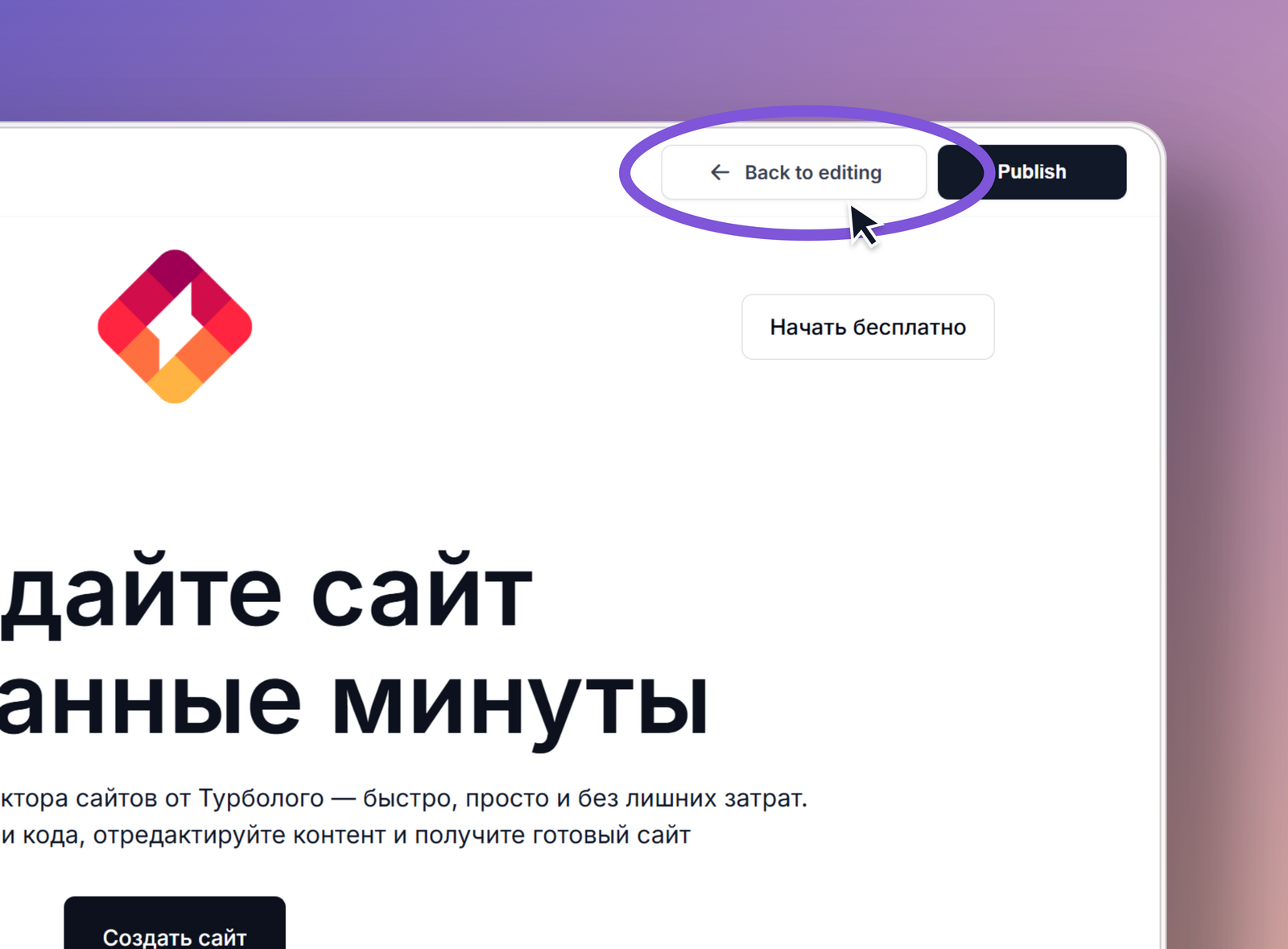 Чтобы выйти из режима предпросмотра, нажмите кнопку «Назад в редактирование». Вы вернетесь к редактированию сайта и сможете внести изменения.